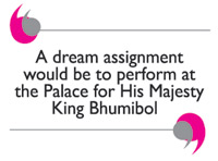 If Lek could choose a dream assignment it would be to perform at the Palace for His Majesty King Bhumibol. In 1959, while filming Jailhouse Rock, HM the King and HM the Queen were invited to the movie set to meet Elvis and Pricilla, and a now well known picture of the four was taken. The moment is meaningful to Lek _ he keeps a picture of the meeting with him at every show, coveting it in the same manner that the many Thai Elvis fan clubs do. Lek describes the picture as “The meeting of two Kings” where Thailand’s Royalty meets an American version. Lek doesn’t look at performing the show as simply a hobby saying, “I will keep doing this forever, until I simply cannot anymore.” He loves his act “because it makes people happy” and he feeds off that energy.