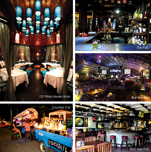 Three words. Mobile cocktail cart. Despite being located right smack in the middle of backpacker heaven, this place is a unique spot to get the night started with chilled-out tunes, excellent cocktails starting at just 60 baht, and a super-friendly owner/bartender who materialises nightly from 6 – 11 p.m.