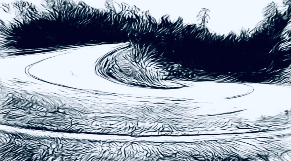 But that’s not possible because two trucks are coming in the upward direction; big all-purpose freight trucks with double rear axles and double wheels. I can even hear through my helmet the first truck labouring uphill as we approach the turn at the same time. My front wheel drops down at the crux of the hairpin as I ever-so-carefully apply the brakes while aware that I’m in a critical zone – if anything happens, I will certainly slide into the truck’s path… And somewhere within that awareness, I surreally feel my rear wheel slip out and forward so that the scooter flops onto its left side with me still on top it as it skids, tires first, down into the oncoming lane and toward the first truck, maybe 15 meters away. My momentum is set and there’s nothing I can do. Rather than a sense of horror or impending tragedy, I feel a certain awe and wonder at both the immediacy and the unlikeliness of the situation.