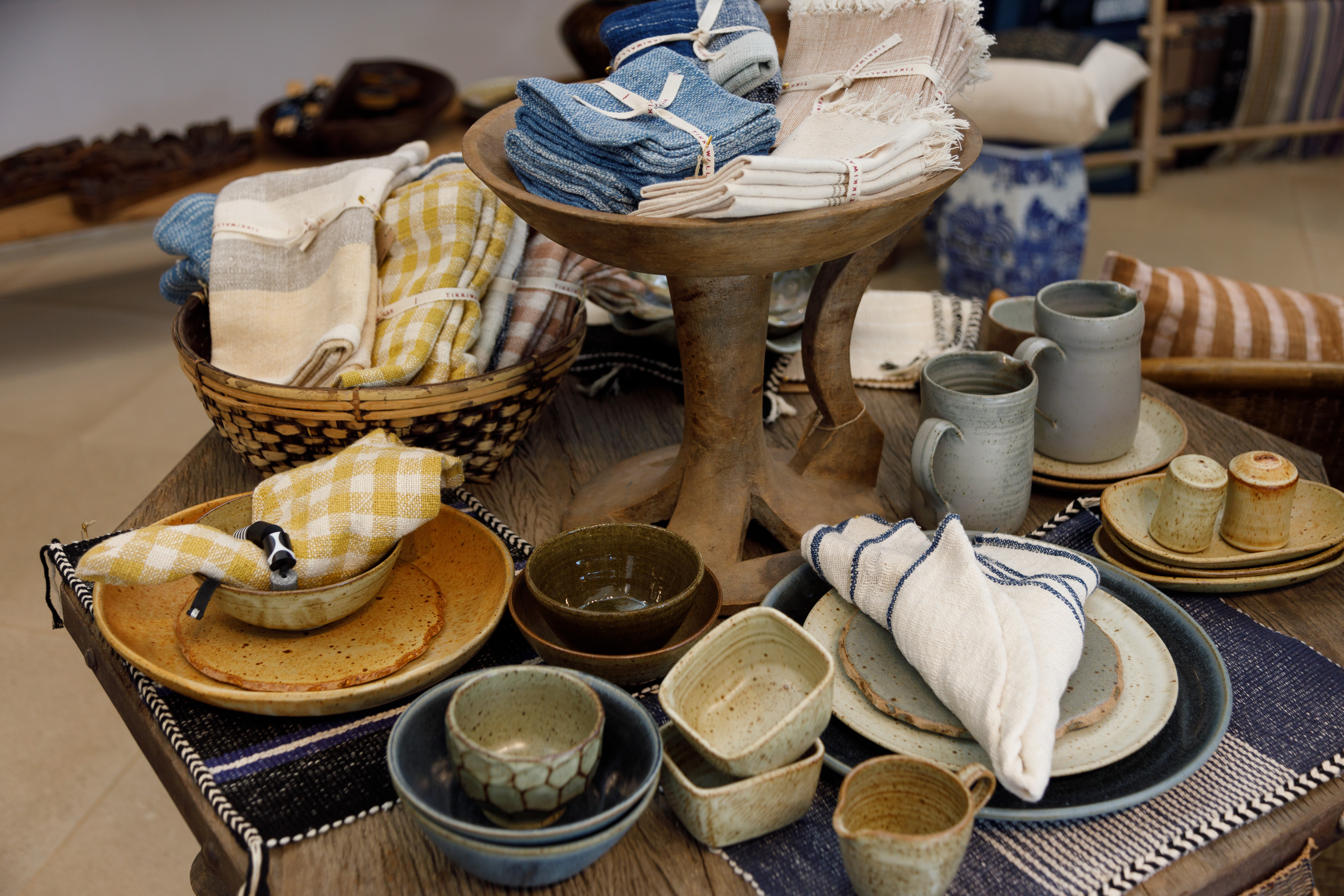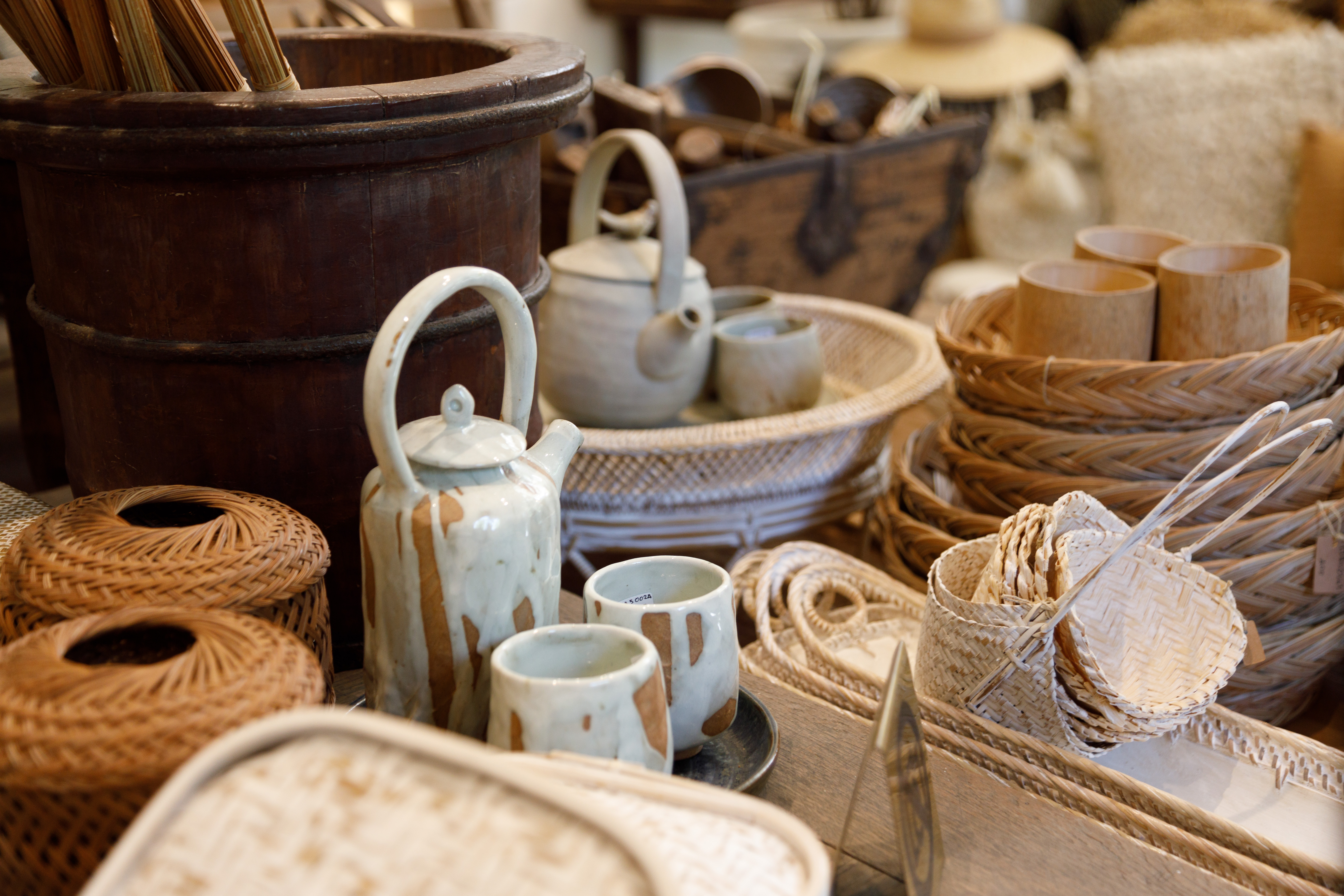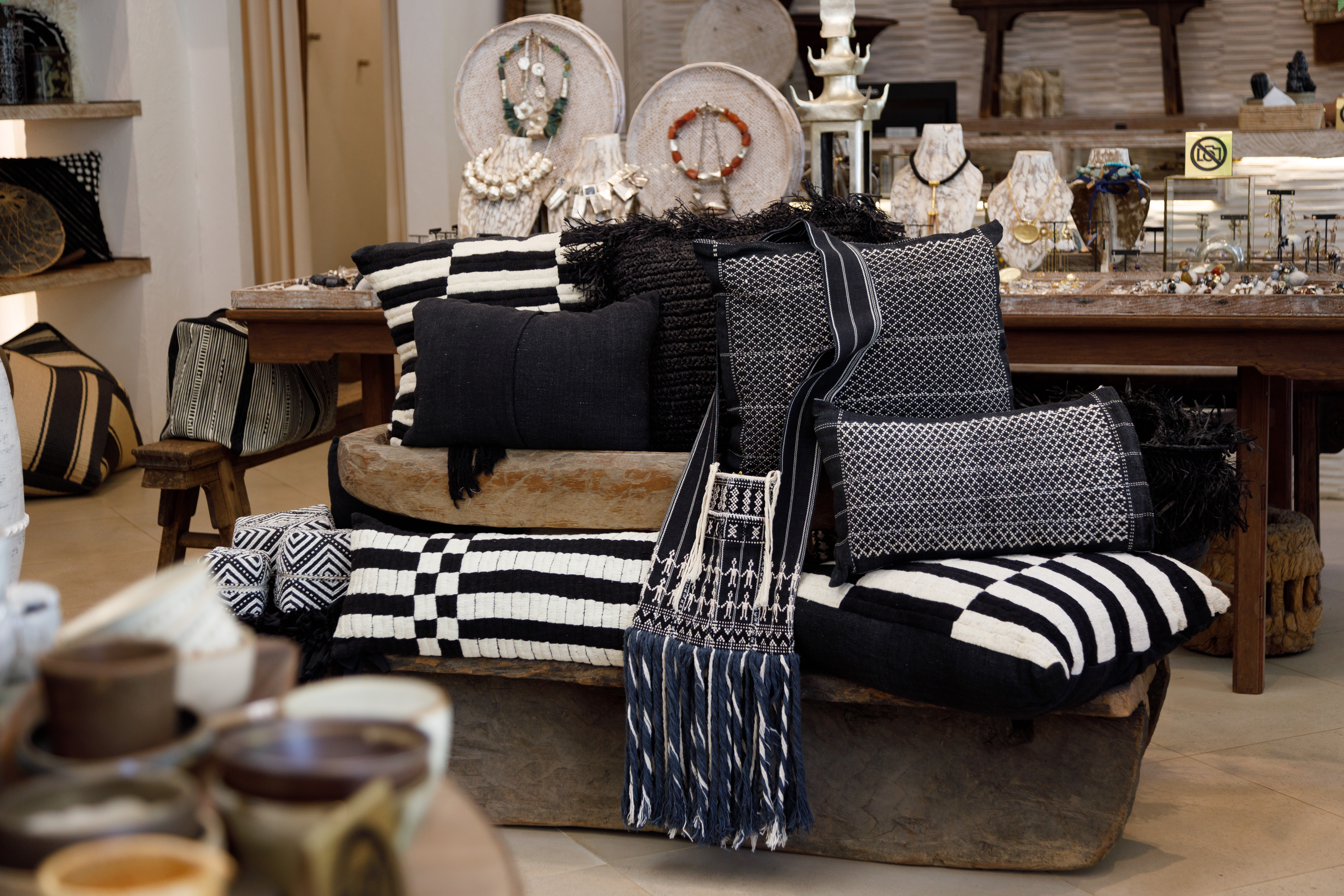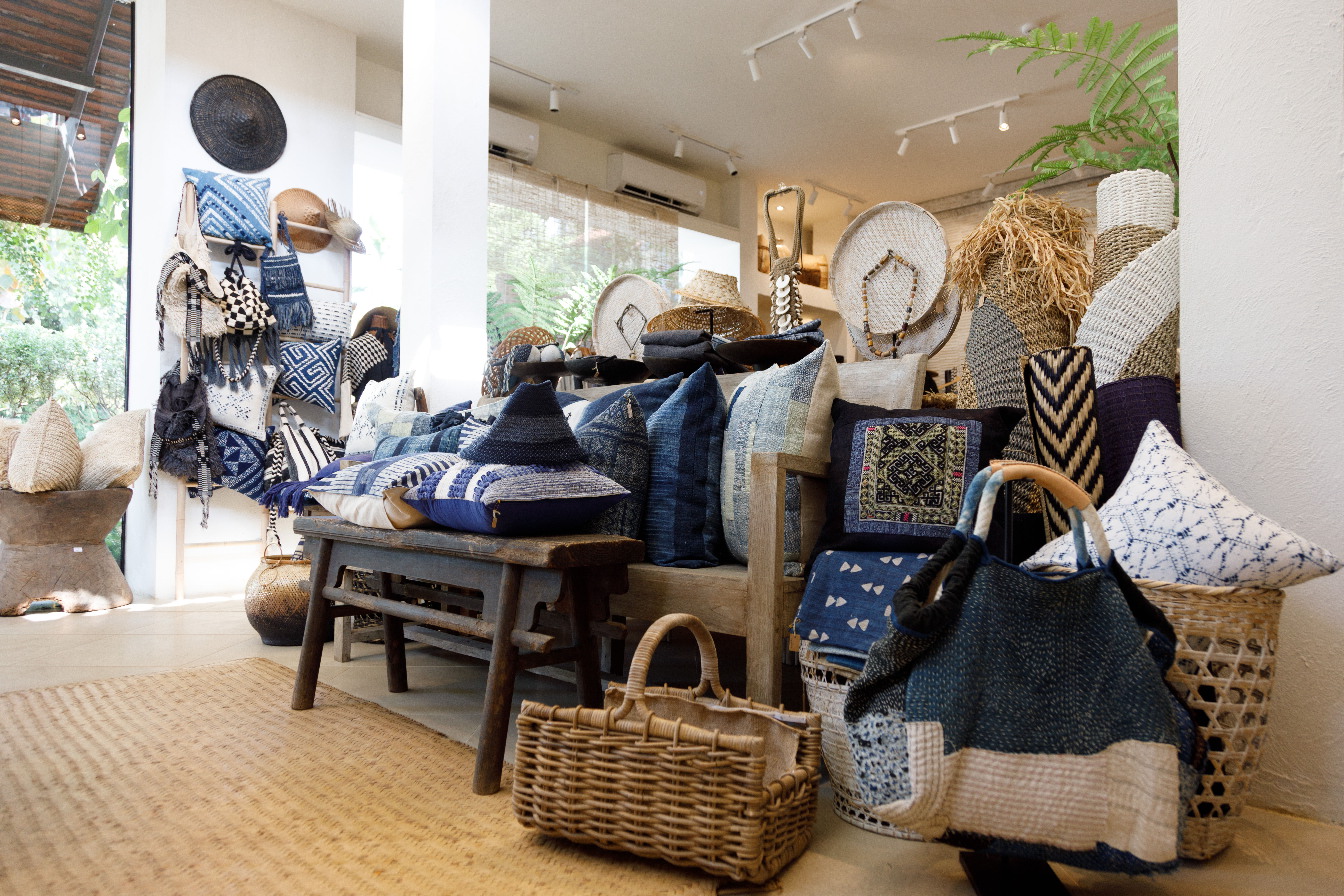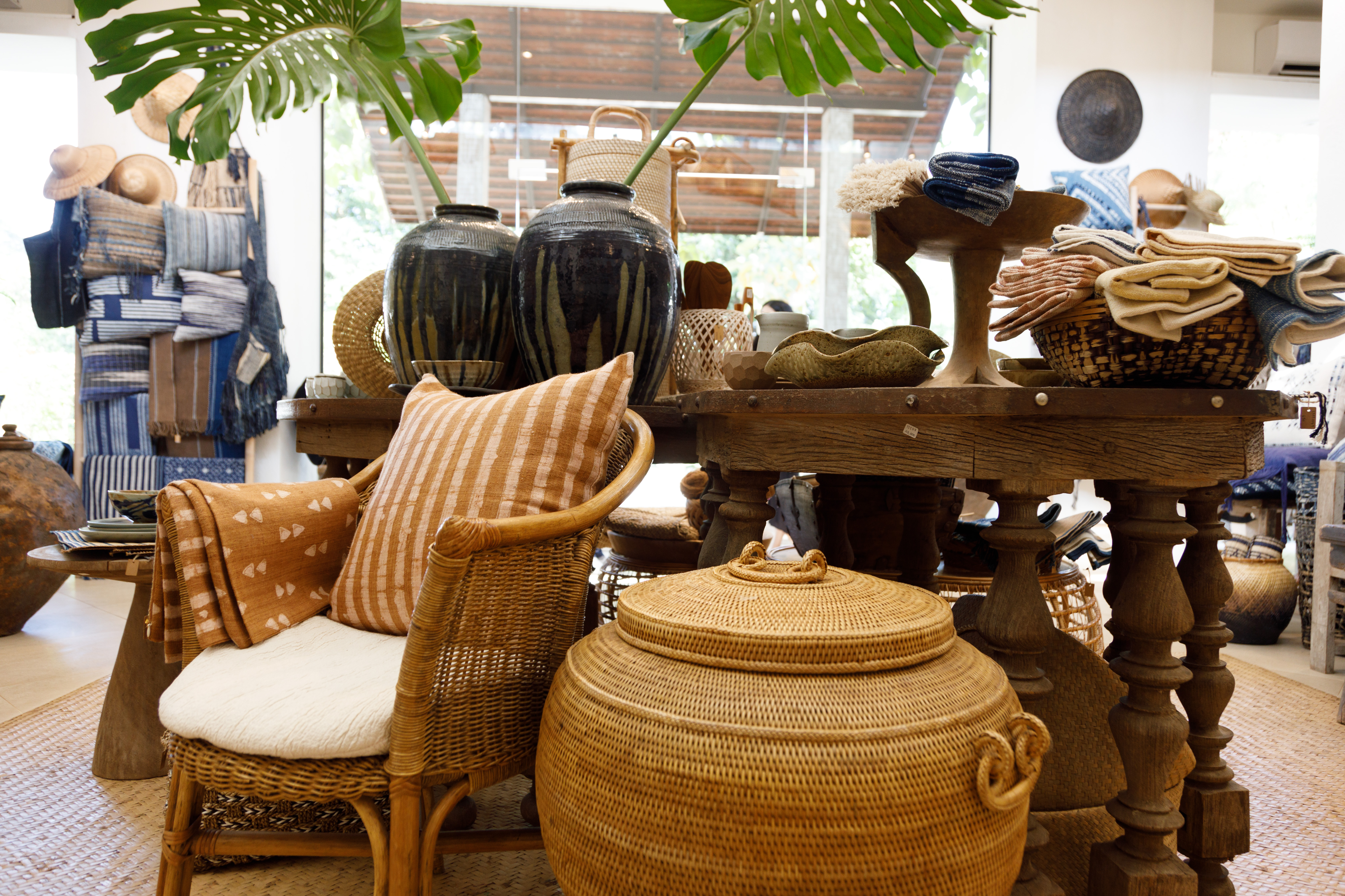 Well, walking into Him Gong shop at Raya Heritage hotel and you will be brushed with the same palate the moment you enter the exquisitely curated little shop – where even the air is thoughtfully scented. Everywhere you look, these natural colours are popping, whether from an exquisite hand woven rattan bag, a stunning piece of ikat silk textile, a bright and fun collection of ceramic vases or an assortment of cushions with textures as rich as their colours.