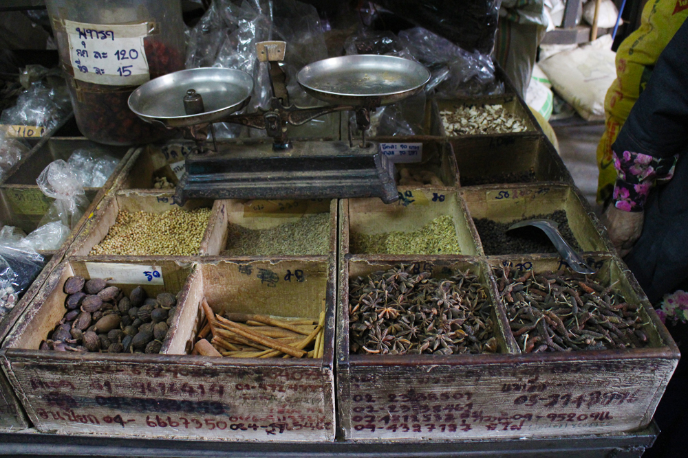 I remember a time when I was young, my mother told me to buy spices to make a Chinese soup. Attracted by the aroma of spices, I walked by this shop, a dilapidated old shop that has not changed in its 80 years. Set in a wooden building on Chang Moi road between Chiang Mai Jai Dee fabric shop and Jib Aung Tueng drug store, this wooden building looks as though it has been forgotten by time.