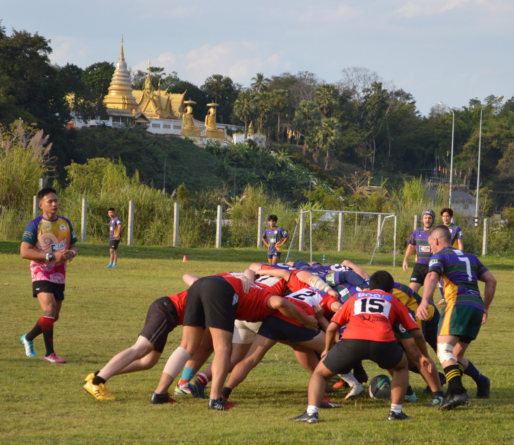 The Chiang Rai Christian International School was the venue and it was the first time the school has hosted a rugby match. The pitch, overlooked by an impressive temple, made it a picturesque setting for the Bears & Cobras to do battle.