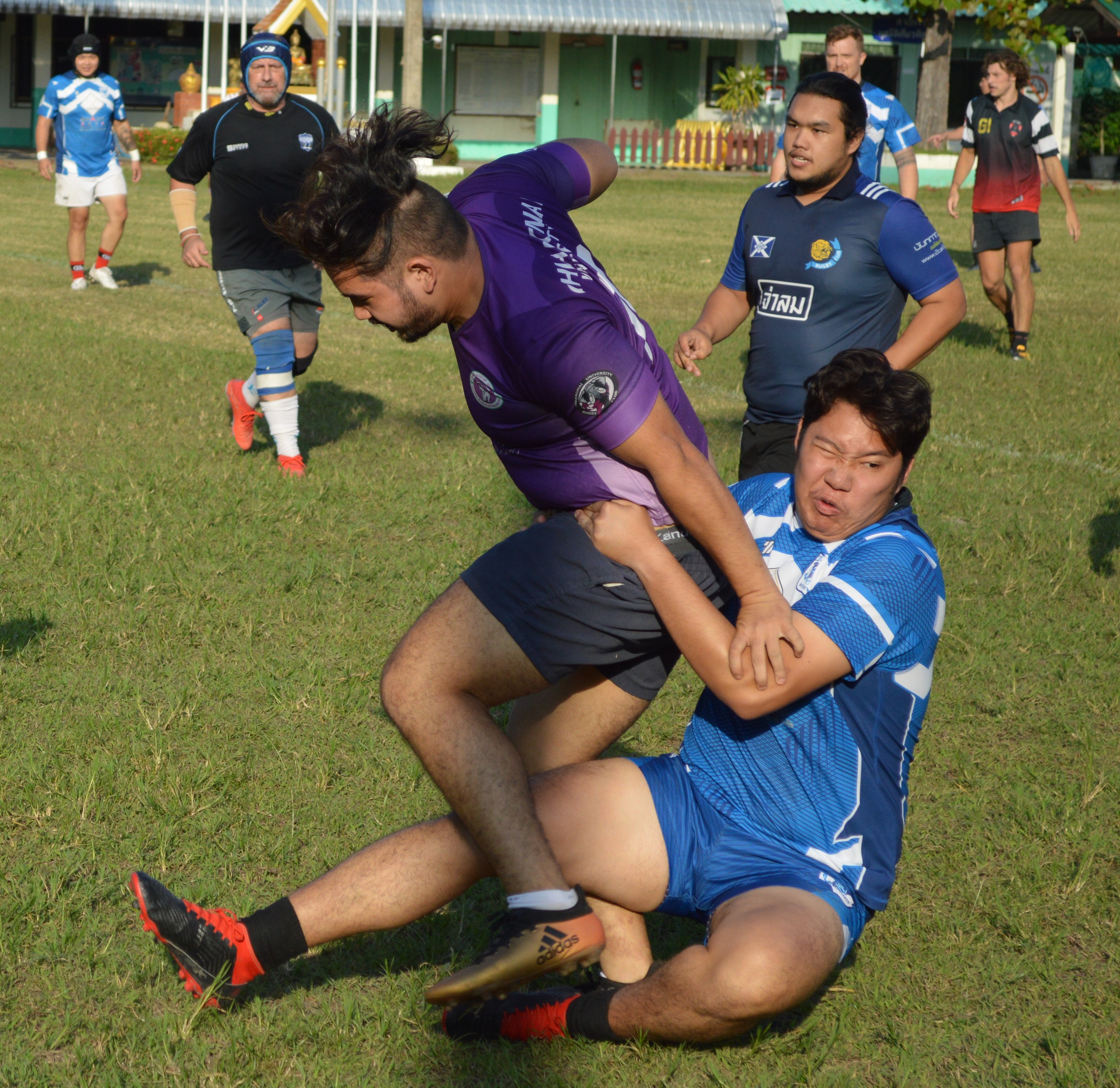 From the restart Payap eagerly attacked down the flanks moving the ball slickly through the hands and looked to be heading for an equalizing score when Tom Stubley broke through but was hauled down with the try line begging, and when the resulting ball was intercepted by CMU, they raced into the Payap 22 and set up the platform for Piri to barge over and extend their lead as the whistle sounded for the break.
