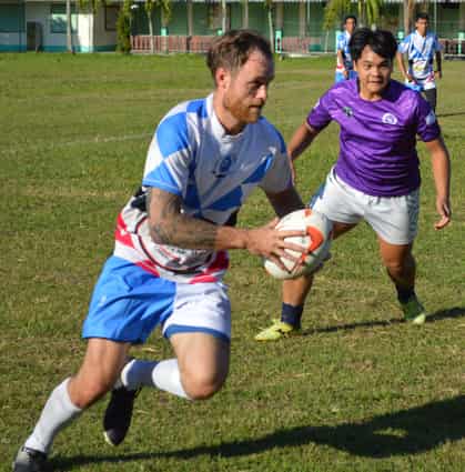 The final period was a more even battle with Lanna back on their game with Captain McRitchie leading from the front and Paul Bolwell being his abrasive self as Lanna looked to get another score. Ted Guggenheim was becoming more influential as the game progressed and only some desperate defense stopped him from getting a score. It looked like CMU had scored again when a break from a mistimed kick saw them run clear only to knock the ball on over the line. From the relieving scrum a clearing kick by Guggenheim took play to the halfway and taking the lineout against the throw saw Lanna surge into the CMU 22. Harris fed the ball to Stubley who drove for the line to score but being taken high when going over the referee blew for a penalty try which tied up the game and denied Stubley a well deserved hat trick.