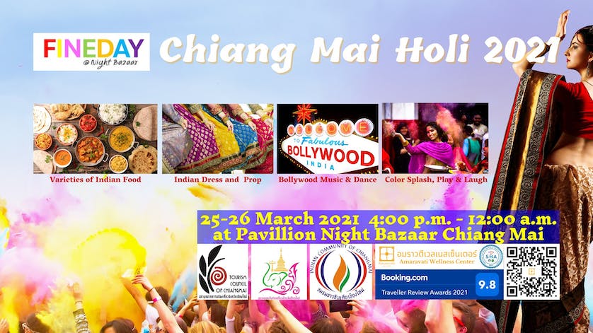 Chiang Mai Holi – festival of colours! 4pm until midnight – at the Pavilion in the Night Bazaar – next to McDonalds https://goo.gl/maps/xoeAb6rYtvaLUxaJA