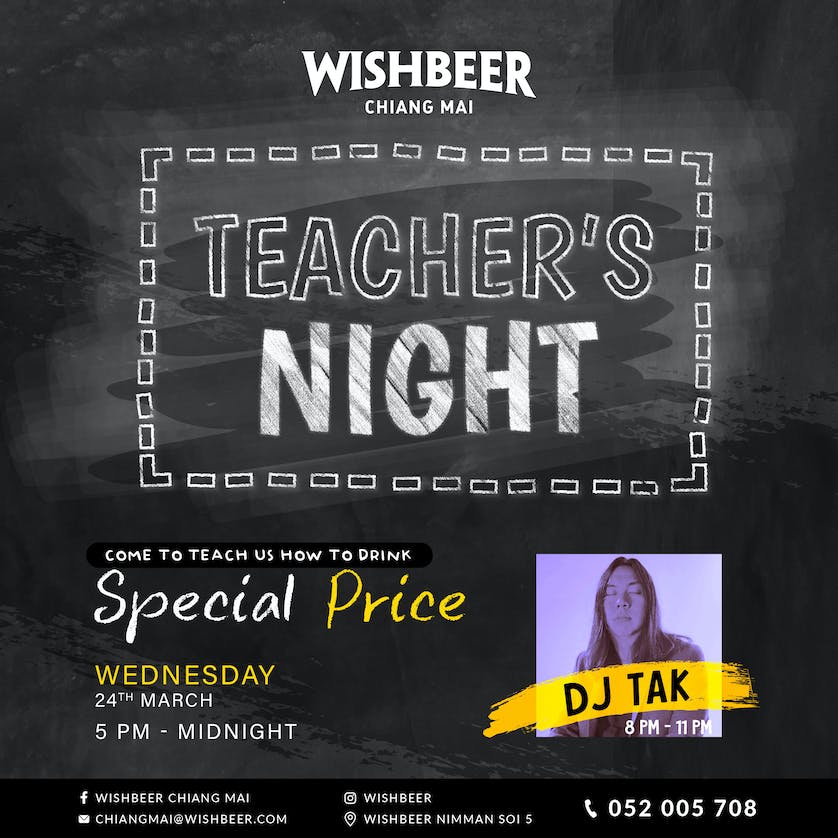 Calling all teachers and educators, Wishbeer Chiang Mai is having a Teachers’ Night event with special prices on selected craft beers on tap and house wines. Event starts at 5pm until midnight – Entertainment: DJTak 8pm-10pm.