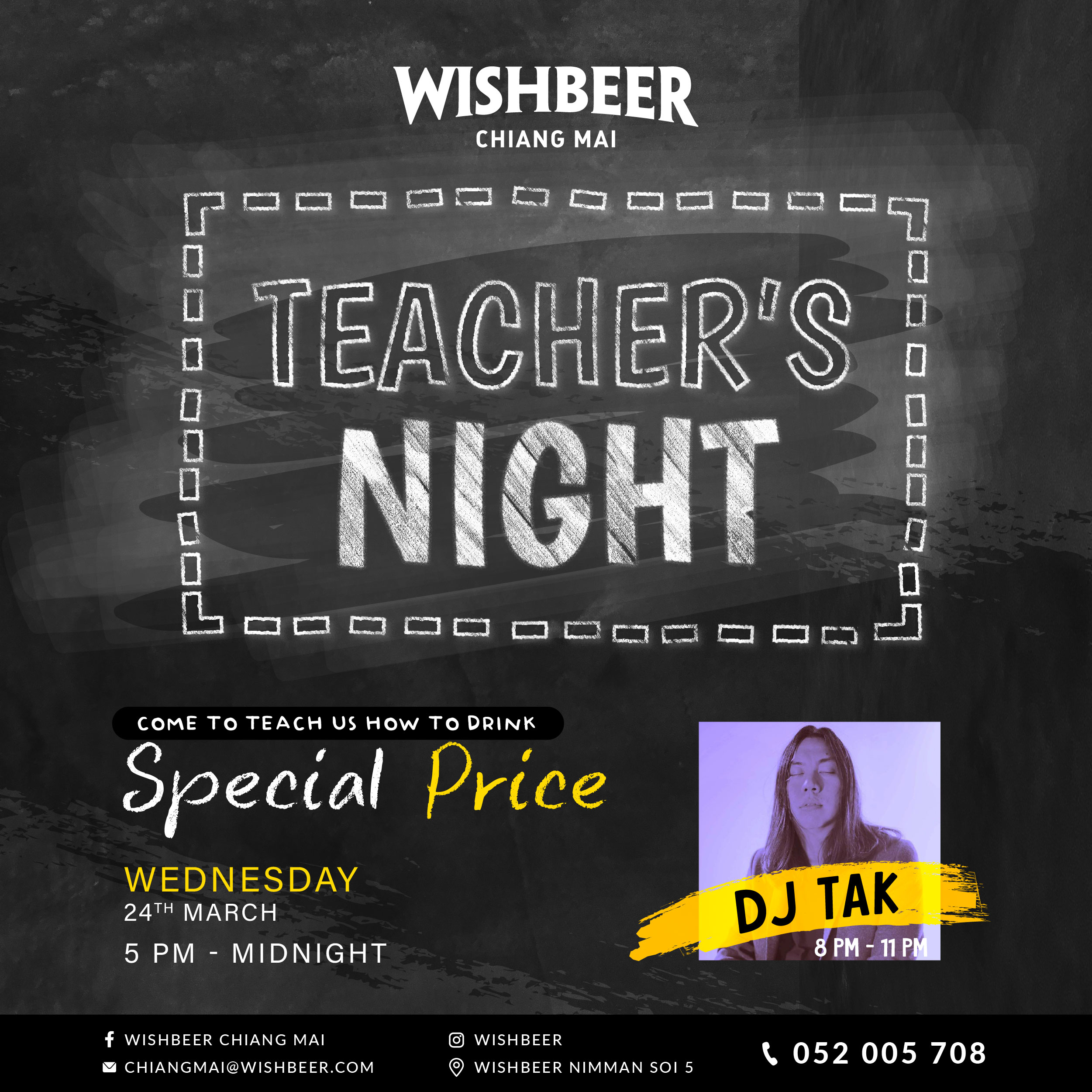 Calling all teachers and educators, Wishbeer Chiang Mai is having a Teachers’ Night event with special prices on selected craft beers on tap and house wines. Event starts at 5pm until midnight – Entertainment: DJTak 8pm-10pm.
