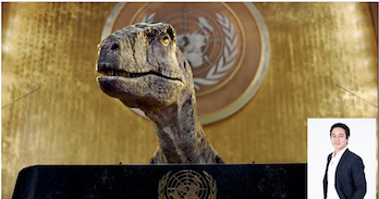 “Don’t choose extinction” says the dinosaur. And me in the bottom-right corner. Late last year the UN released a YouTube video