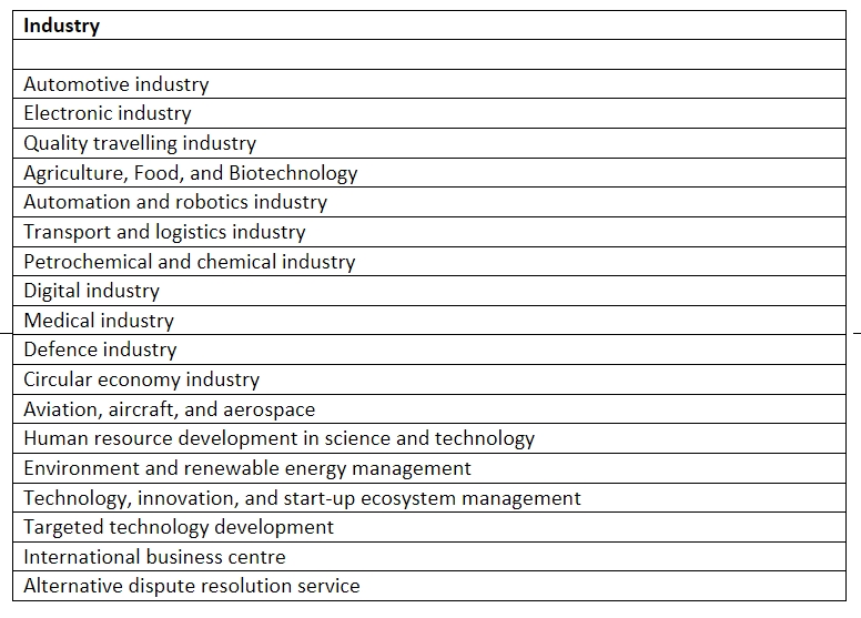 Experts, investors, executives, and entrepreneurs in start-ups are given the green light to work, invest, establish, and oversee businesses in the following target industries with the approval of the BOI and the Cabinet: