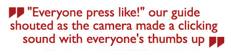 Thankfully, there was no embarrassing umbrella to lead our way, but our guide then pulled out a massive banner and we were all corralled from our peaceful meditation to pose for the requisite group photo. “Everyone press like!” our guide shouted as the camera made a clicking sound with everyone’s thumbs up, and me looking slightly bewildered. Oh, Like!