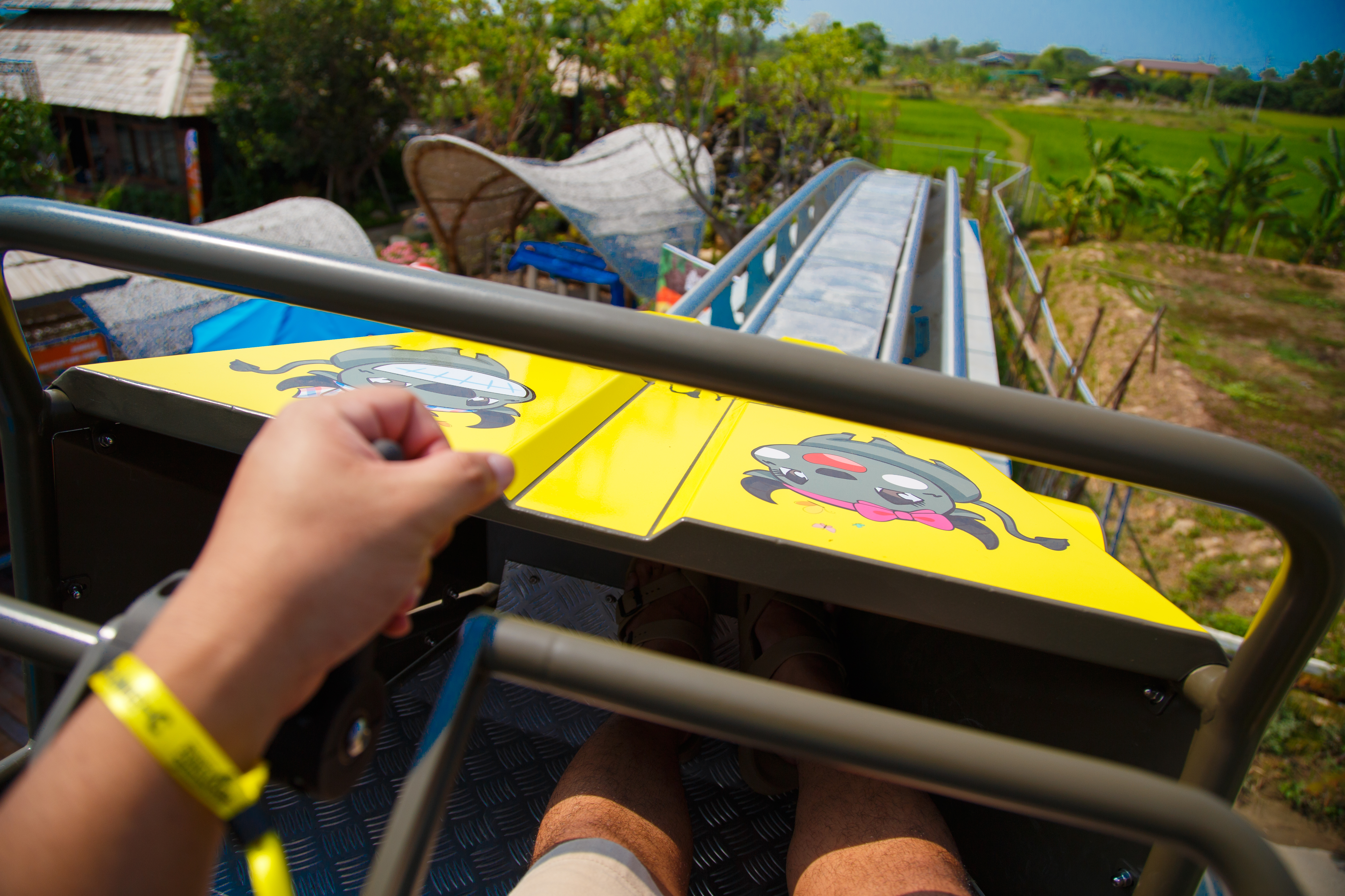 Let’s end this tour with the zip line. It was the last but not least! This activity was the most adventurous activity in the park. It was totally different from riding a coaster kart. The activity provides twenty stations for you to cross over. And I would say that all stations were so frightening as it was my first time on a zip line, and my fear of heights came roaring back and my screams as I began to fly echoed across the entire area! felt like I was thrown away for a moment. It was fearful at first, but I then could get used to it after 3-4 rides. I found this activity the most frightening but terrific one. Zip line with twenty stations cost 500 baht/person.
