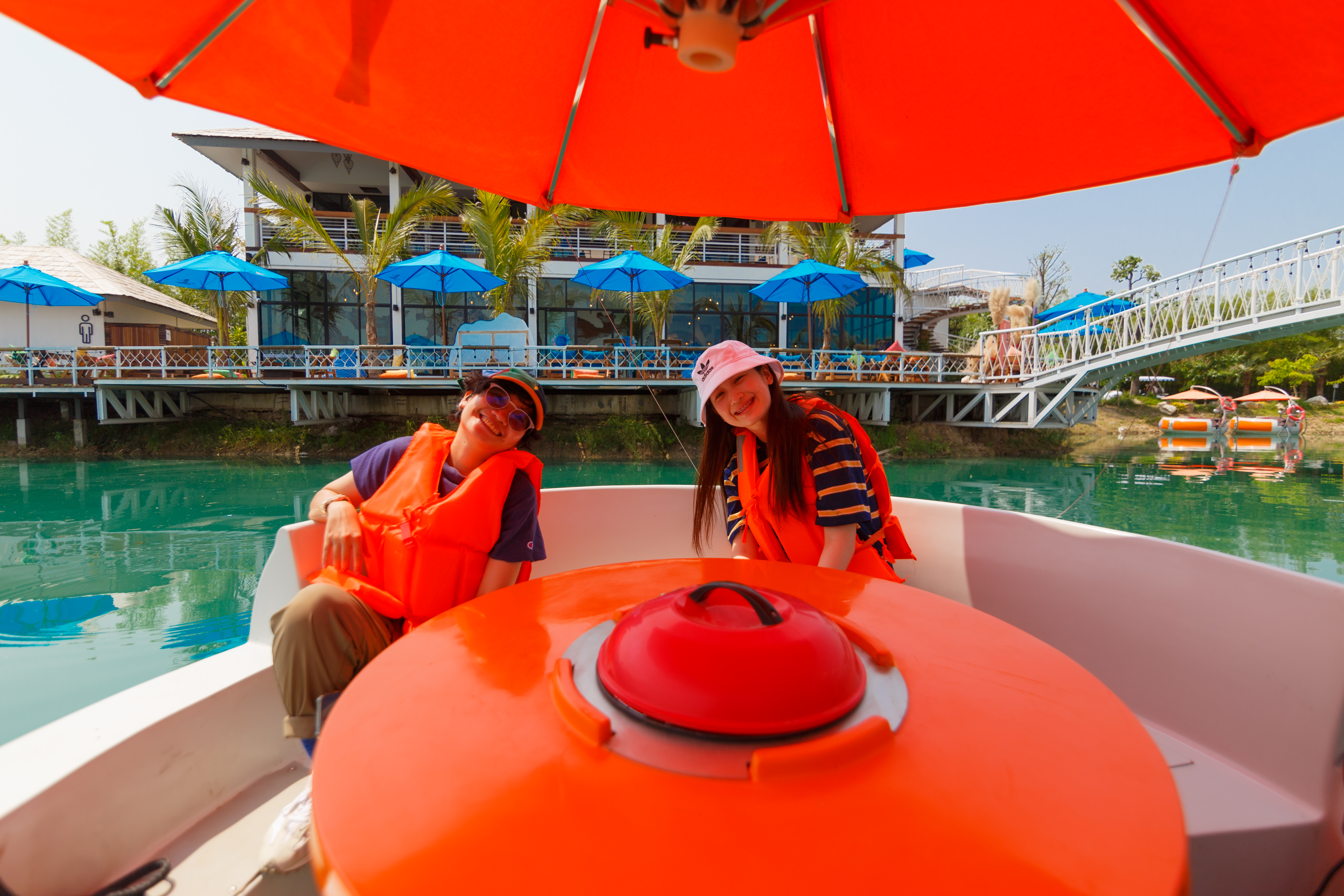 I then went on the Barbeque boat which was rather strange as it was a round boat with a BBQ grill in the middle – Thai style! Visitors can bring food and drinks to enjoy on the boat while sitting and watching the resort and restaurant of the park’s scenery. They can also choose whether they will drive the boat by themselves or ask a staff to drive for them. A 15-minute drive costs 150 baht/person.