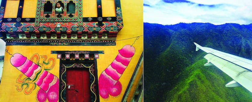 But soon Lonely Planet was turned into a big rosary bead as we descended towards Paro, the country’s only international airport. As the captain performed a giant slalom between mountains, which acted as immovable and deathly poles, I gawped at wandering cows looking right at me from their elevated pastures and flinched as the wing appeared about to clip the shingles of a couple of mountain-side homes. You see, until 2011, only eight commercial pilots were certified to fly into this nutter airport (reassuringly named by Travel+Leisure in 2009 as the world’s most dangerous airport), and even now there are only six flights per day arriving in Paro, with a strict no flying after sunset rule.