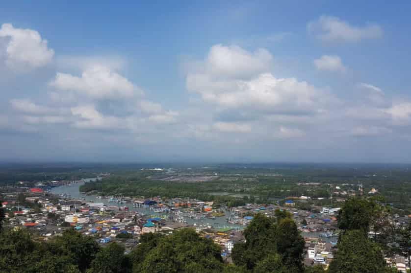 Chumphon is the gateway to the south of Thailand, the governor of the province stated with pride as he welcomed us, explaining that most travellers merely passed through and didn’t spend any time in the province, something he wishes to change. Over the next few days our caravan of massive busses, spilling scoops of journalists at every stop traversed the province. Our first stop was to visit the Prince of Chumphon Monument, son of King Rama V and father of the Royal Navy Thai whose English education in the 1890s led to great reform. Following the naval theme, we saw a replica of the HTMS Chakri Naruebet, Thailand’s rather infamous, and certainly redundant, aircraft carrier. Next to the monument on Sai Ri beach, we got to see the sea for the first time, though unfortunately the beach wasn’t accessible. We drove north to Khao Matsi Viewpoint where a Guanyin shrine overlooks the whole city of Chumphon. We admired the Tha Taphao River flowing out of the Chumphon Estuary where it merges into the Gulf of Thailand, my eyes enviously being drawn towards the deep ultramarine sea beyond.