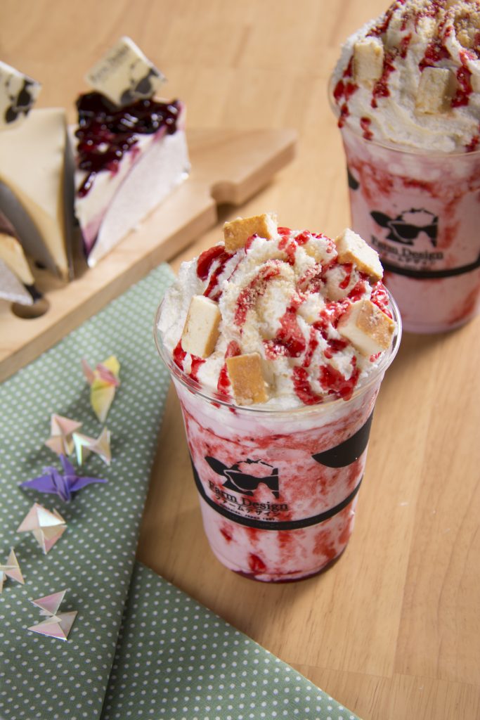 ชีสเค้ก เฟรปเป้ คือสีสันใหม่ของวงการเบเกอรี่ เปลี่ยนจากชีสเค้กยอดฮิตของร้าน กลายมาเป็นเมนูเครื่องดื่มสุดเก๋ไก๋ที่หาซื้อได้เพียงแค่ที่ฟาร์มดีไซน์เท่านั้น เพราะมีกรรมวิธีทำที่นำชีสเค้กจริงๆมาปั่นเป็นเครื่องดื่ม โดยไม่ใช้ไซรัปชีสเค้กมาเสริมแต่งกลิ่น แถมยังตกแต่งด้วยชีสเค้กขนาดจิ๋วและขนมเบเกอรี่ชนิดอื่นๆลงบนแก้วอีกด้วย ผลผลิตของนวัตกรรมเครื่องดื่มชิ้นนี้เกิดขึ้นจากความร่วมมือระหว่างบริษัทฟาร์มดีไซน์แห่งประเทศญี่ปุ่น และบริษัท เอส คอมพานี (1933) จำกัด ในเครือของ บริษัท บุญรอดบริวเวอรี่ จำกัด บริษัทสัญชาติไทยที่ได้ซื้อแฟรนไชส์ของฟาร์มดีไซน์มาเปิดในประเทศไทย