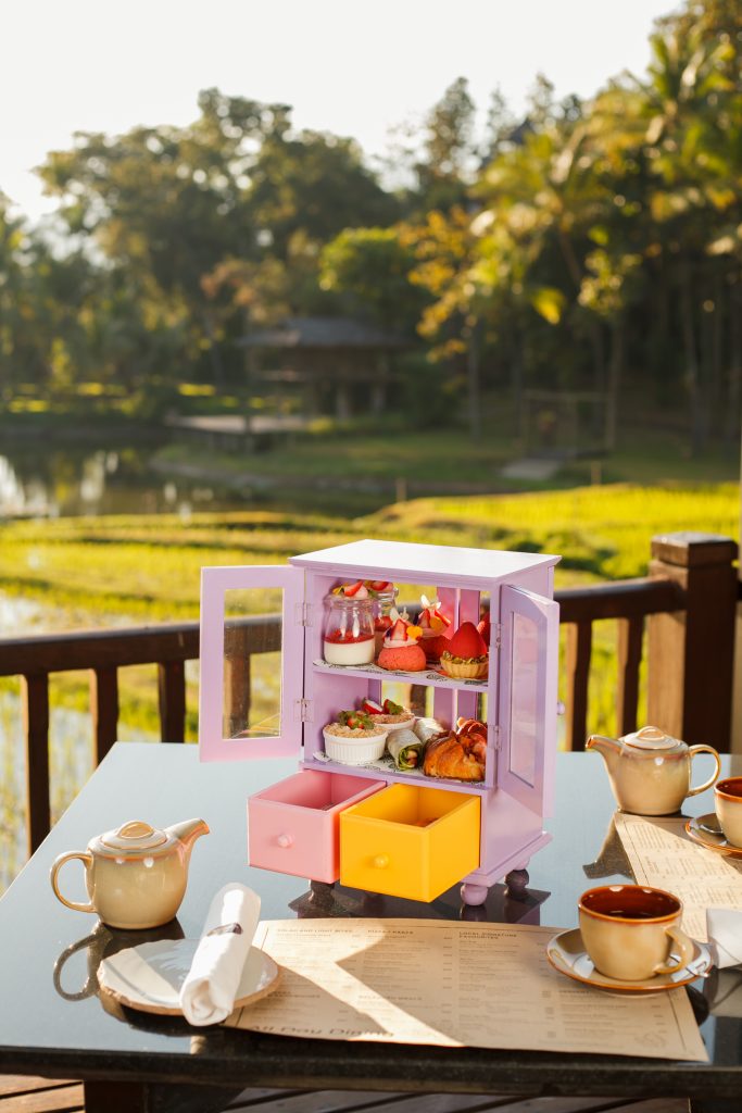 ช่วงเวลาของการจิบน้ำชายามบ่าย ส่วนใหญ่เรามักจะเห็นขนมหวานหลากสีสันขนาดน่ารักที่เสิร์ฟมาในรูปแบบที่จัดเรียงเป็นชั้นๆ เพื่อทานคู่กับชา ทว่าชุด Afternoon Tea ของโรงแรม โฟร์ซีซั่น รีสอร์ท เชียงใหม่นั้นมีรูปแบบที่ต่างออกไป เพราะขนมหวานได้ถูกจัดเสิร์ฟมาในตู้กับข้าวขนาดกะทัดรัดสีสันสดใส มาในคอนเซ็ปต์ที่เชื่อมโยงกับวิถีชีวิตของคนไทย ที่ทุกครัวจะต้องมีตู้กับข้าว เป็นตู้แห่งความสุข ที่เปิดมาก็ได้เจอของอร่อย