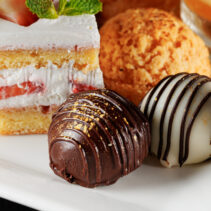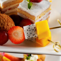 ทางด้านขนมหวาน ก็ยกขบวนความหอมหวาน มาให้เพลิดเพลินกับชาถ้วยโปรด ไม่ว่าจะเป็น สโคนกลิ่นกรุ่น เข้มข้นหอมเนย ผสานรสชาติของลำไยและแครนเบอรี่ แค่ป้ายครีม ปาดซอสสตรอว์เบอร์รี่หรือวิปครีมแล้วหยิบเข้าปากก็อร่อยในทุกคำที่ได้ทาน, Fruit cake ขนมหวานสุดคลาสสิค กับเนื้อเค้กหอมนุ่ม ที่ได้รสชาติของผลไม้อบแห้งหลากหลายชนิดในหนึ่งคำ, ละมุนใจกับขนมไทรเฟิล ขนมหวานในแก้วใส ที่สลับชั้นระหว่างสปอนจ์เค้กและวิปครีม ท็อปด้วยสตรอว์เบอร์รีและบลูเบอร์รี่รสหวานอมเปรี้ยว, ขนมคู่โต๊ะชายามบ่าย อย่างชอร์ตเบรด บิสกิตแท่งยาวหอมเนย พร้อมรสชาติที่ช่วยเสริมอรรถรสของชาได้อย่างสมบูรณ์แบบ เติมหวานอย่างต่อเนื่องด้วย Chocolate truffle ช็อกโกแลตลูกกลมเนื้อแน่นหนึบ กัดทานแล้วได้รสชาติช็อกโกแลตเข้มข้นเน้นๆ รับประกันความนุ่มละลายในปากของสตรอเบอร์รี่ช็อตเค้ก กับเนื้อเค้กที่เบาละมุน ทานพร้อมสตรอเบอร์รี่เนื้อฉ่ำ สดชื่นตัดเลี่ยนด้วยองุ่น สับปะรด แตงโม และแก้วมังกร ที่เสิร์ฟมาแบบเสียบไม้ ให้ทานเป็นคำได้ง่ายๆ