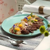 สำหรับจานขนมหวานก็มีวิธีการทำที่พิถีพิถัน นำเสนอออกมาในรูปแบบที่แปลกใหม่ไม่แพ้กัน อย่างขลุ่ยข้าวเหนียวมะม่วง ที่นำข้าวเหนียวมะม่วงห่อด้วยแป้งปอเปี๊ยะแล้วนำไปทอด เสิร์ฟทานกับมะม่วงสุก น้ำกะทิ และไอศกรีมงาดำแบบฉบับโฮมเมด