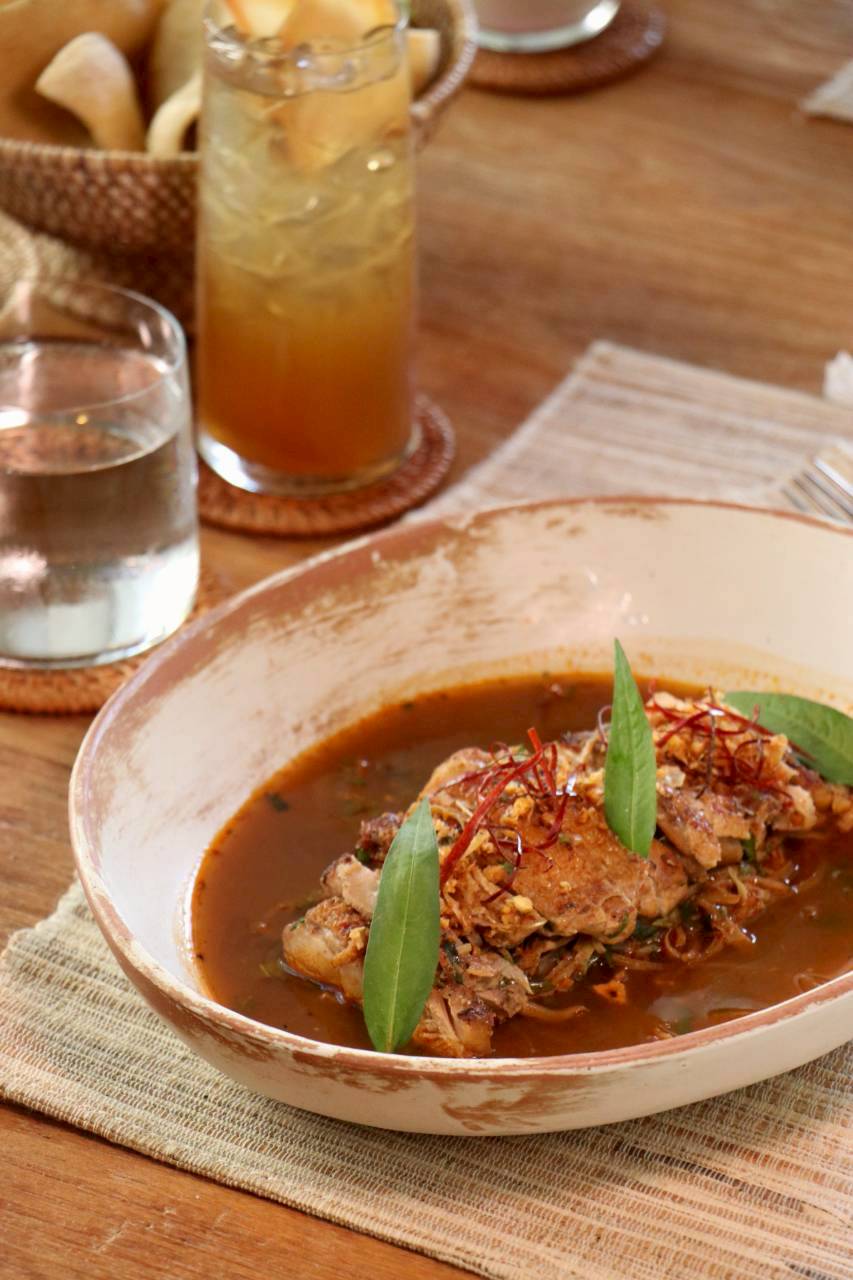 “ห้องอาหารได้ปรับเปลี่ยนในส่วนของเมนูที่ยังอยู่ภายใต้คอนเซ็ปต์ Crossroad และได้เพิ่มความน่าสนใจให้มากขึ้นด้วยเมนู Childhood Heritage ซึ่งได้คัดเลือกจากการระดมไอเดียเมนูวัยเด็กในความทรงจำของทีมงาน โดยเป็นเมนูอาหารพื้นถิ่นที่มักทานกันในครอบครัวตั้งแต่เด็ก จนเกิดเป็น 20 จานที่ได้คัดเลือกเป็นเมนูประจำห้องอาหาร เราก็นำเมนูเหล่านั้นมาดัดแปลงต่อยอด แต่ยังคงรสชาติที่แท้จริงเอาไว้ และเครื่องแกงต่างๆ เราทำขึ้นมาเองทั้งหมด” เชฟแบงค์เล่าถึงคอนเซ็ปต์คร่าวๆ