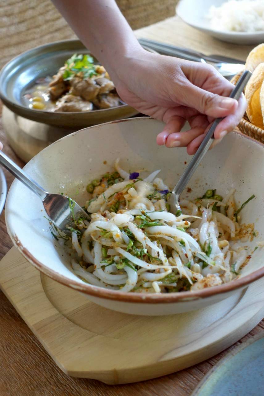 นอกจากนี้ยังมีอาหารในหมวดของ Khu Khao Signatures เมนูอาหารเหนือดั้งเดิมของห้องอาหาร ที่ใช้วัตถุดิบพื้นถิ่นเกือบทั้งหมด เช่น ขนมจีนน้ำเงี้ยว และข้าวซอยซี่โครงเนื้อ