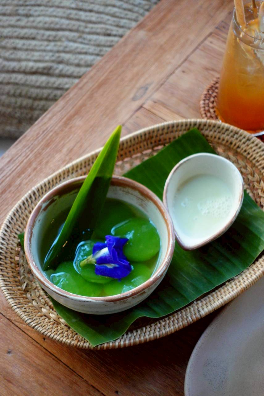 ขนมอินทนิล ขนมหวานเคี้ยวเพลินที่ทำจากแป้งมัน เสิร์ฟมาเป็นลูกกลมรสสัมผัสนุ่มหนึบ ได้กลิ่นหอมของใบเตย เสิร์ฟมาในน้ำเชื่อม เพิ่มมิติในรสชาติและความหอมสดชื่นด้วยกะทิที่ให้รสชาติเค็มนิดๆ