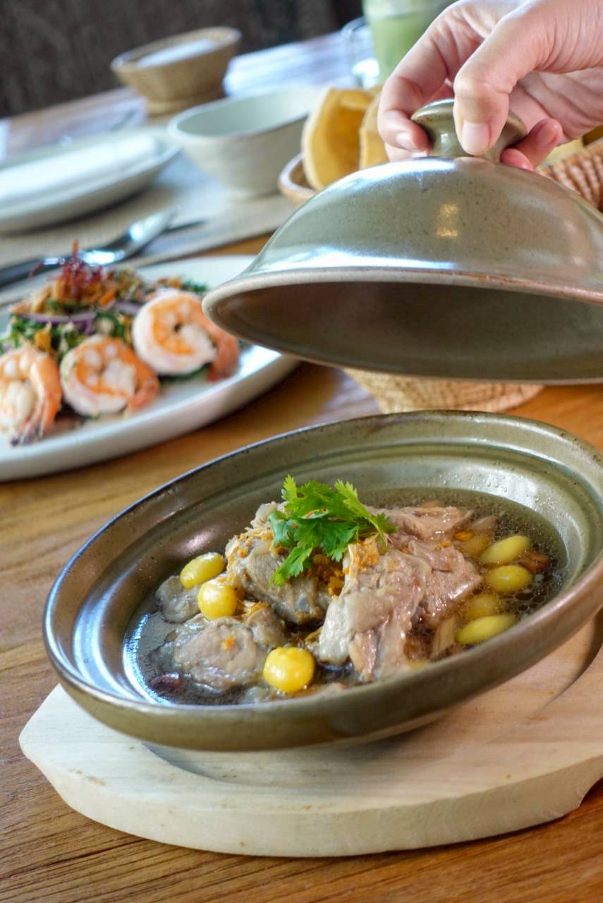 ต้มซี่โครงหมูถั่วลิสง เป็นเมนูในหมวดของ Crossroad Cuisine นำเสนออาหารชาติพันธุ์ ที่เบสน้ำซุปมาจากสามเกลอที่ทำขึ้นเอง ต้มกับผักกาดแห้งหมักเกลือที่นำไปตากไว้ อันเป็นการถนอมอาหารเพื่อเก็บไว้ทานในระยะยาวของชาวจีนยูนนาน ซึ่งเชฟอยากส่งต่อและนำเสนอให้แก่นักชิม