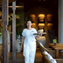 ผู้อยู่เบื้องหลังอาหารแต่ละจานคือเชฟแบงค์ ธีรชัย อัครศรีสวัสดิ์ หัวหน้าเชฟผู้มากประสบการณ์ด้านอาหารไทย เชฟแบงค์เริ่มต้นจากเป็นเชฟอาหารไทยที่ร้านอาหารจิม ทอมป์สัน จากนั้นทำงานให้กับห้องอาหารในโรงแรมเรเนซองส์ กรุงเทพฯ ราชประสงค์ และย้ายมาประจำการที่สระบัว บาย กิน กิน ร้านอาหารไทยไฟน์ไดนิ่งมิชลินหนึ่งดาว และตัดสินใจมาลงหลักปักฐานที่เชียงใหม่เมื่อช่วงโควิด-19 สานต่อการเป็นเชฟที่โรงแรมรายา เฮอริเทจ ด้วยความที่หลงรักบรรยากาศ วัฒนธรรม อาหารการกิน และวิถีชีวิตที่สงบไม่เร่งรีบ