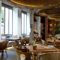 นับเป็นห้องอาหารที่อบอวลด้วยมวลความทรงจำครั้งวันวาน ด้วยการตกแต่งที่นำข้าวของเครื่องใช้ที่แสดงออกถึงความงดงามของภูมิปัญญาพื้นบ้านล้านนา ไม่ว่าจะเป็นงานจักสาน ผ้าทอมือ และเครื่องปั้นดินเผา ที่เก็บรักษาวิถีดั้งเดิมที่กำลังจะสูญหายไปให้กลับมามีชีวิตอีกครั้ง ทั้งเมนูอาหารที่โดดเด่นเรื่องการผสมผสานหลากวัฒนธรรมจากกลุ่มชนเผ่า ทั้งไทย จีน ลาว พม่า และบางส่วนจากเพื่อนบ้านในแถบอุษาคเนย์ ภายใต้คอนเซ็ปต์ Crossroad ที่นำรสชาติอาหารในยุคสมัยสร้างบ้านแป๋งเมืองเชียงใหม่ มาเล่าเรื่องใหม่อย่างร่วมสมัยและไม่ทิ้งความงดงามทางศิลปะและเรื่องราวประวัติศาสตร์