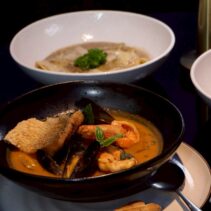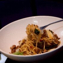 ความอร่อยไม่ได้จำกัดอยู่แค่อาหารอิตาเลียน หลายเมนูได้เติมกลิ่นอายอาหารไทยเข้าไปเพื่อเพิ่มรสชาติความจัดจ้าน เป็นอีกตัวเลือกที่อร่อยได้หลากหลาย ทั้งเมนูน้ำพริกอ่องทานที่ทานคู่กันกับข้าวแต๋น, พล่าคอหมูย่าง, แฟตตูชินีข้าวซอยไก่ชุบแป้งทอด, ซี่โครงหมูที่ตุ๋นจนเนื้อนุ่มละลายในปาก เสิร์ฟมาในเครื่องแกงฮังเล ที่จะช่วยเสริมรสชาติจานนี้ให้กลมกล่อมยิ่งขึ้น