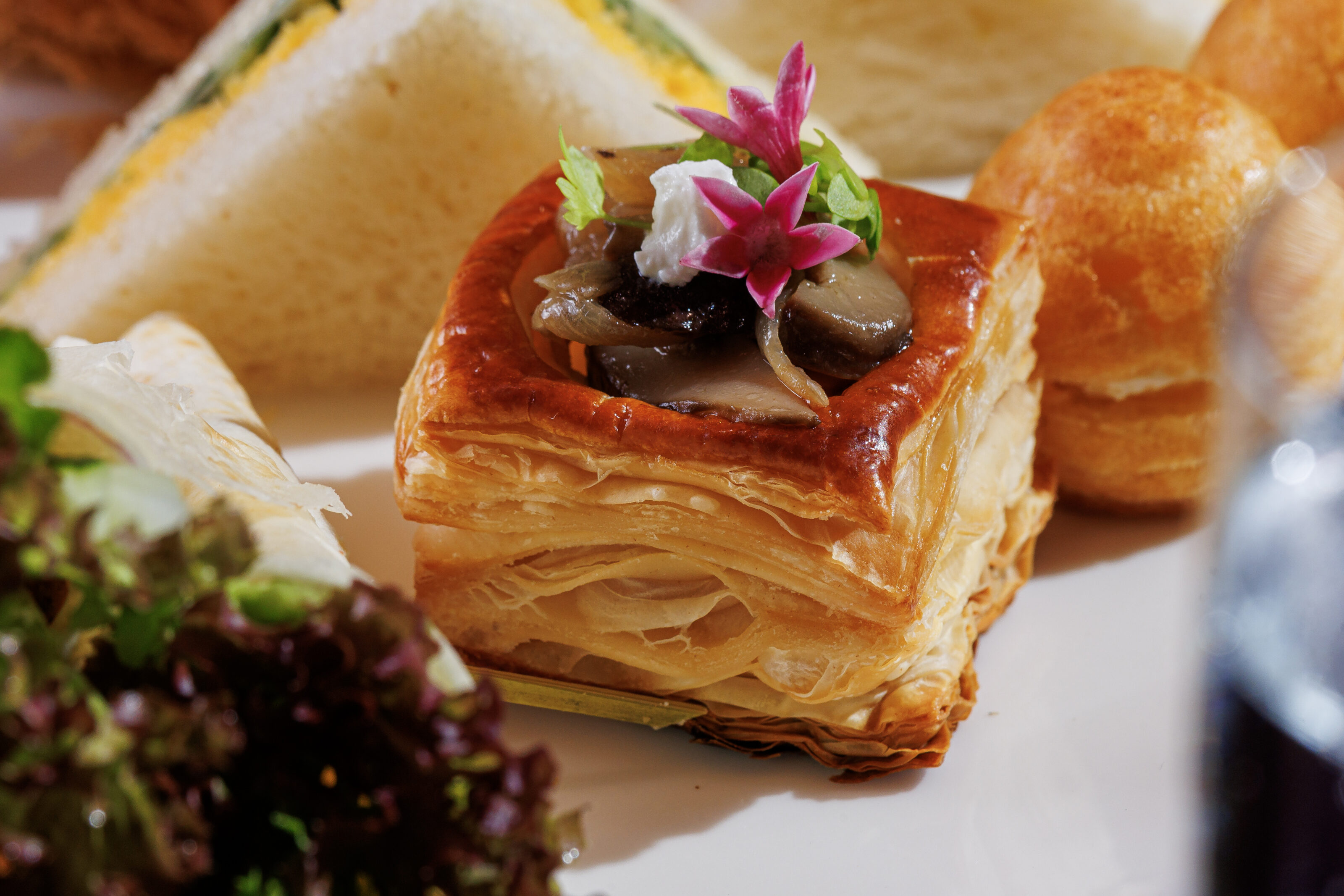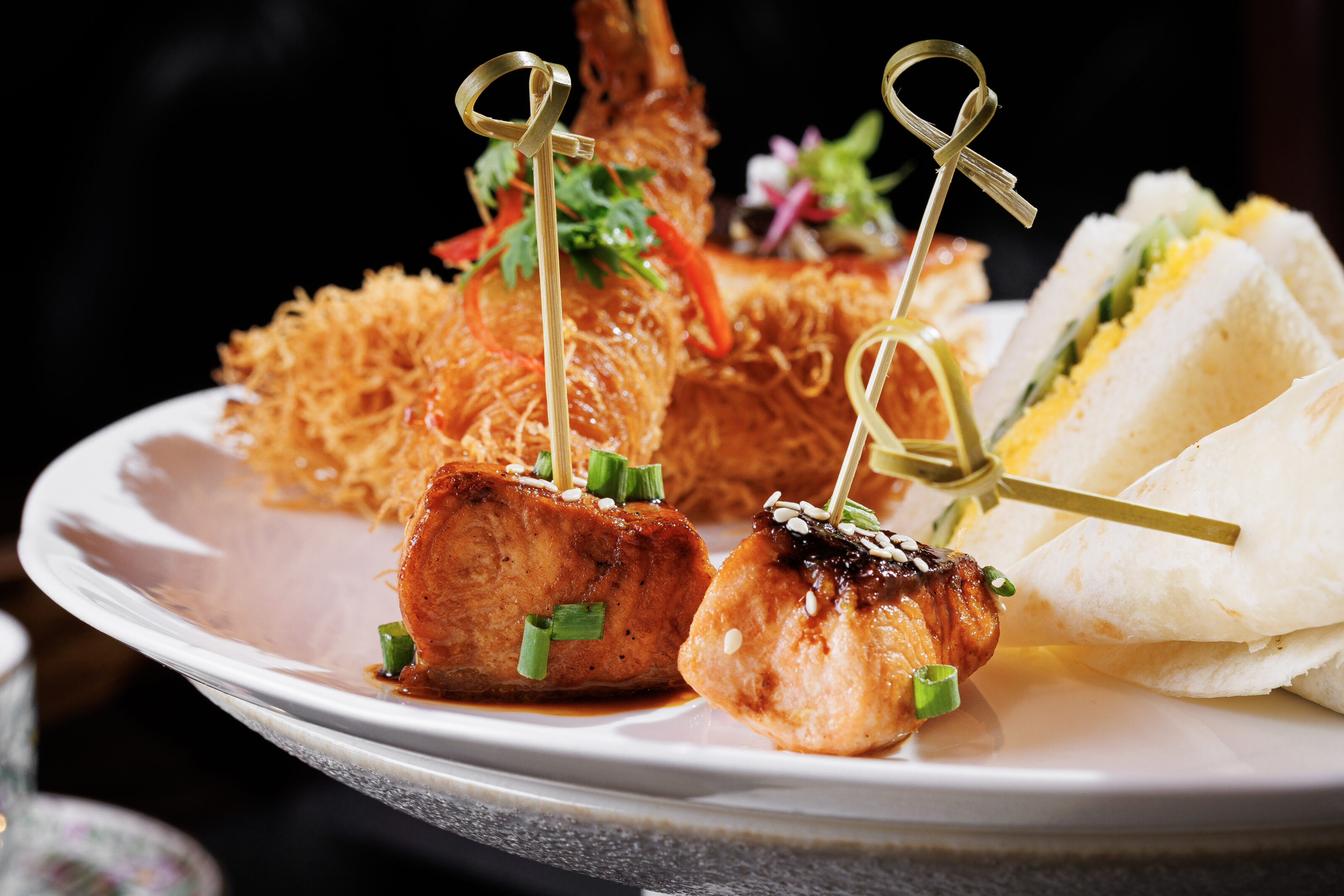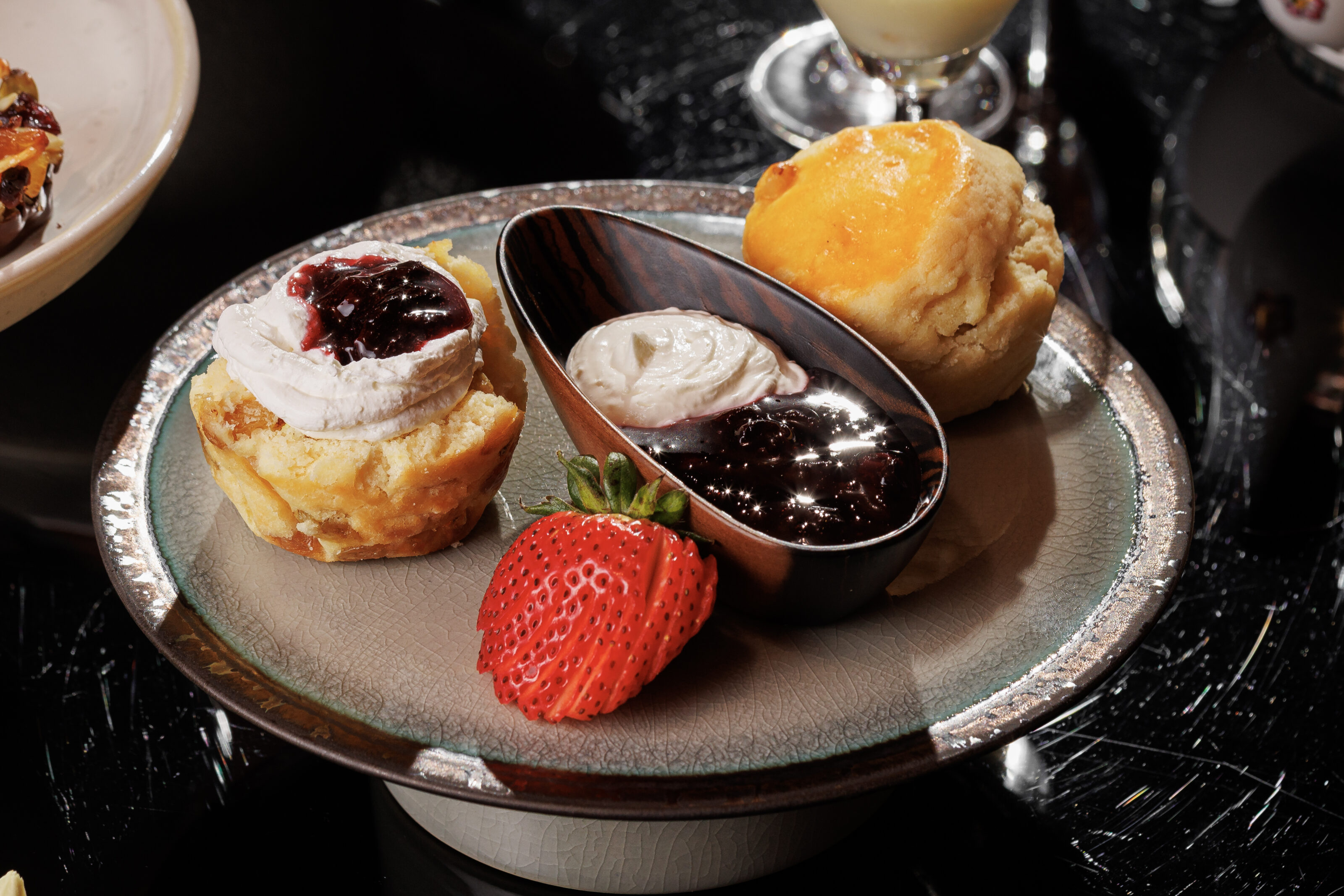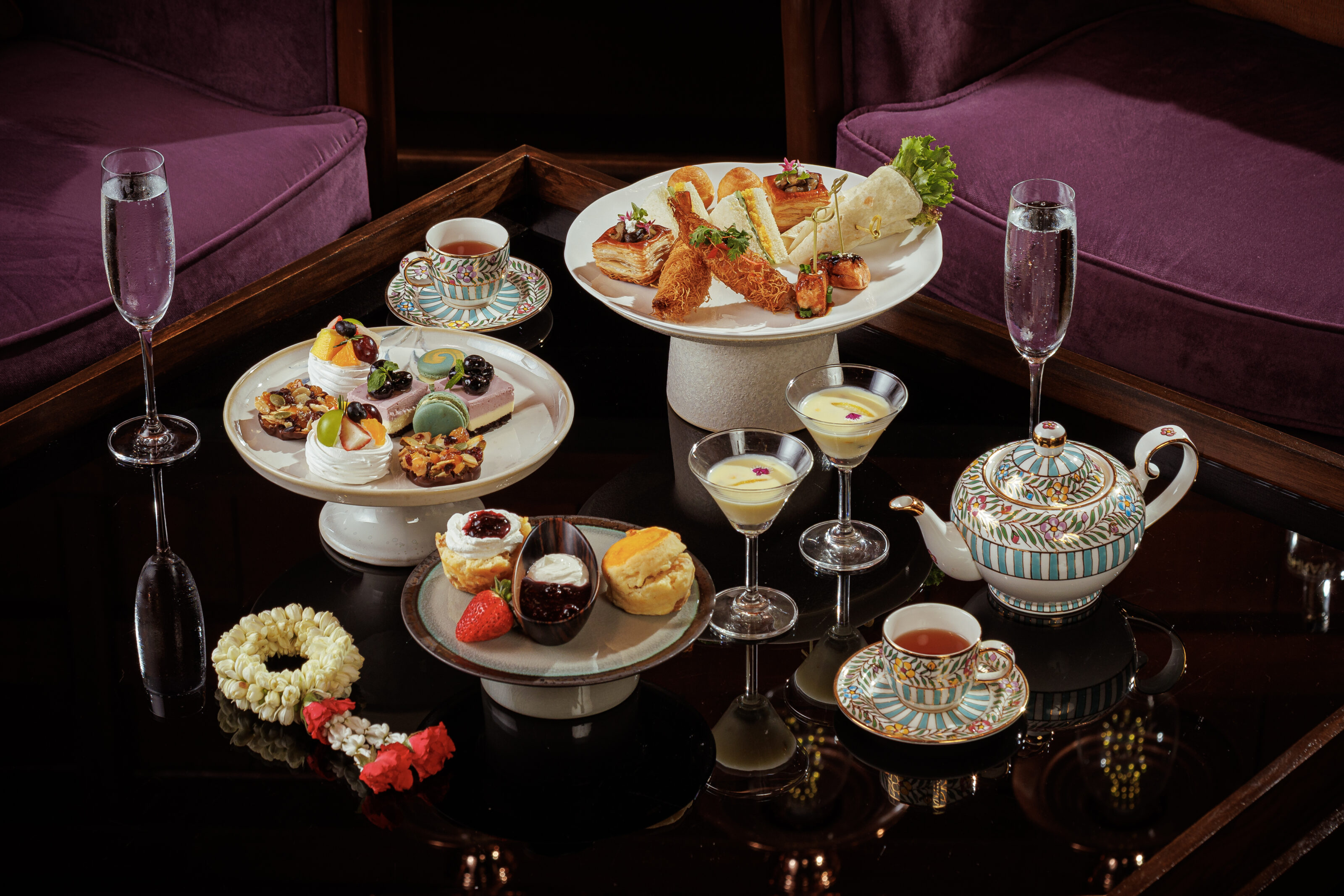 บรรดาเซ็ตของว่างคาว-หวาน ที่จัดเรียงมาบนชั้นให้ทานคู่กับชาถ้วยโปรด มีทั้งสโคนลูกเกด ขนมยอดนิยมที่มักมาคู่กับชายามบ่าย เนื้อสโคนด้านนอกกรอบเล็กน้อย ด้านในเนื้อนุ่มฉ่ำหอมด้วยเนย เสริมเติมรสชาติได้ด้วยครีมและแยมบลูเบอร์รี่, มาการองที่นุ่มหวานกำลังดี และเมอแร็งก์เนื้อเบาหอมกรอบ ที่เพิ่มความหวานฉ่ำด้วยชิ้นผลไม้ที่ท็อปอยู่ด้านบน, หวานฉ่ำอย่างต่อเนื่องด้วยบลูเบอร์รี่ชีสเค้ก รสเปรี้ยวอมหวานของบลูเบอร์รี่ ผสานความนุ่มละมุนของชีสเค้กเนื้อแน่น ได้รสชาติที่กลมกล่อมกำลังดี เรียกความสดชื่นด้วยเลมอนและเสาวรสโพเซ็ตเสิร์ฟมาในแก้วทรงสูง ขนมหวานเนื้อเนียน รสสัมผัสครีมมี่ ที่ผสานรสชาติของเลมอนและเสาวรสได้เปรี้ยวหวานลงตัว ต่อด้วยความเข้มข้นหอมมันของช็อกโกแลตฟลอเรนทีน บิสกิตแสนอร่อยที่ประกอบด้วยผลไม้เชื่อมและถั่วในน้ำผึ้งคาราเมลแสนหวาน เคลือบด้วยดาร์กช็อกโกแลตเข้มข้น