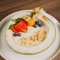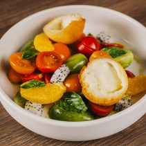 ทั้งจานสเต็ก เมนูเส้น หรือว่าจานสลัด เมนูธรรมดาที่เราเคยคุ้น ได้ผ่านการสร้างสรรค์และต่อยอดจากเชฟมากประสบการณ์ ด้วยการหยิบจับเอาวัตถุดิบในท้องถิ่นมาผสมผสานกับเทคนิคและกรรมวิธีในแบบเฉพาะ เมนูธรรมดาก็กลับกลายเป็นจานพิเศษ ด้วยการนำมาเสนอในรูปแบบที่แปลกใหม่ ทั้งสไตล์ตะวันตก และในแบบฟิวชั่น อย่างจาน Cold Cut เรียกน้ำย่อย ที่นำรสชาติกลิ่นอายเมืองเหนือ ด้วยการนำวัตถุดิบอย่างแหนม และไส้อั่ว มาทานคู่กันกับ พามาแฮม ซาลามี และชีส เช่นกันกับจานส้มโอน้ำปู๋สุดจี๊ดจ๊าดฉบับคนเมือง ที่เสริมเติมความอินเตอร์ด้วยหอยเซลล์ฮอกไกโด แนะนำเลยจานนี้ อีกจานที่อยากให้ลองก็คือขาแกะสไตล์ไส้อั่ว ที่เสริมเติมความหอมมันในรสชาติด้วยมอสซาเรลล่าชีสทอด