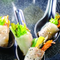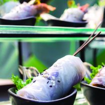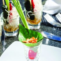 al leaves wrapped around an assortment of goodies, spicy shrimp salad northern style (plaa goong), spring rolls and more.