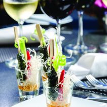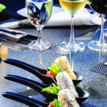 เมนูที่เป็นเอกลักษณ์ของห้องอาหาร (signature) นำเสนอความเป็นไทยผสมผสานล้านนา สร้างเสน่ห์ให้อาหารด้วยขนาดพอดีคำ เช่น เมี่ยงคำ ให้ความอร่อยครบรส ทานคู่กับน้ำจิ้มสูตรเฉพาะของเชฟ พล่ากุ้งห่อไข่ คัดสรรกุ้งเนื้อเนื้อเน้นคุณภาพ ไส้อั่วห่อใบชะพลูย่างเสิร์ฟคู่กับหมี่กรอบแช่ซอสคาราเมล ปอเปี๊ยะเวียดนาม ไส้เป็ดย่างรมควันจนหอมกรุ่นเนื้อเป็ดคำโตที่แม้จะเป็นอาหารว่างแต่ก็อยู่ท้องเช่นกัน ตบท้ายด้วย มังกรคาบแก้ว(ม้าฮ่อ) อาหารว่างไทยโบราณเสิร์ฟพร้อมส้มเนื้อฉ่ำที่ครบถ้วนทั้งประโยชน์จากสมุนไพรและความอร่อยที่แค่คำเดียวคงไม่พอ