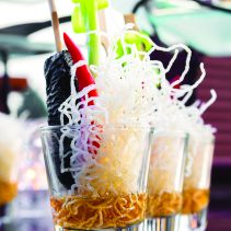 al leaves wrapped around an assortment of goodies, spicy shrimp salad northern style (plaa goong), spring rolls and more.