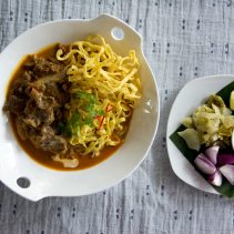 เริ่มต้นจานแรกด้วย ขนมจีนน้ำเงี้ยวซี่โครงหมู สูตรมรดกจากครอบครัวชาวเนสท์แม่ริมเชียงใหม่ ซี่โครงหมูเนื้อนุ่มปรุงคลุกเคล้าพร้อมกับน้ำเงี้ยวรสกลมกล่อมและขนมจีนเส้นขาว เสิร์ฟพร้อมกับเครื่องเคียงเป็นถั่วงอก มะนาว พริกน้ำปลา ผักกาดดองหั่นฝอย และแคบหมูไร้มัน ต่อด้วย ผัดไทยกุ้งสด เส้นผัดไทยเนื้อเหนียวนุ่มปรุงรสกับซอสมะขามสูตรพิเศษที่ผ่านการปรับรสชาติให้เหมาะกับชาวไทยและชาวต่างชาติได้อย่างลงตัว วางคู่กับผักสด มะนาว ถั่วลิสง ถั่วงอก และพริกป่น ตบท้ายด้วย ข้าวซอยเนื้อน่องลาย กลิ่นหอมเข้มข้นโรยหน้าด้วยบะหมี่ทอดกรอบ และในฤดูกาลที่เห็ดถอบงอกเงยตามป่าเขา เหล่าพ่อครัวแม่ครัวประจำเนสท์แม่ริมยังมีบริการเมนูหายากอย่าง ข้าวซอยเห็ดถอบ อีกด้วย
