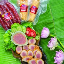 Patcharaporn ‘Pat’ Unprasert the owner of Patcha since 1989, is well known for her quality central Thai dishes. And this month shares with us her special Karawek Sod See, a colourful dish inspired by central Thai as well as Chinese cuisine. The colourful egg rolls, she says, are reminiscent of the karawek, the same family as the ylang-ylang flower, adding a vibrant flash of colour to her dish. The rolls are filled with preservative-free sausage meats which she worked with the Department of Livestock to develop. This special roll is part of her Patcha brand, since 1989 and is vacuum packed and can be easily heated in a microwave before serving.