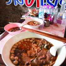 This month owner of Kua Kai Nimman, the famous chicken noodle shop, took Spoon&Fork to visit Ros Dee Yiam Ko Khun a beef noodle restaurant her and her friends discovered when they came to visit Chiang Mai four years ago. Her favourite is the jumbo dish, a massive bowl which can be shared with four or five friends and is brimming with a flavourful broth and high grade beef.