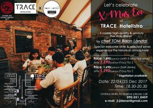 ร่วมเฉลิมฉลองคริสต์มาส กับมื้อค่ำสุดพิเศษ พร้อมไวน์ที่ผ่านการเลือกสรรให้เข้ากันกับเซ็ทอาหาร ที่ เทรส โฮเทลลิสโทร โรงแรมที่ได้รางวัลเชียงใหม่ดีไซน์อวอร์ดประจำปี 2017 ในบรรยากาศอาคารเก่าอันโรแมนติก