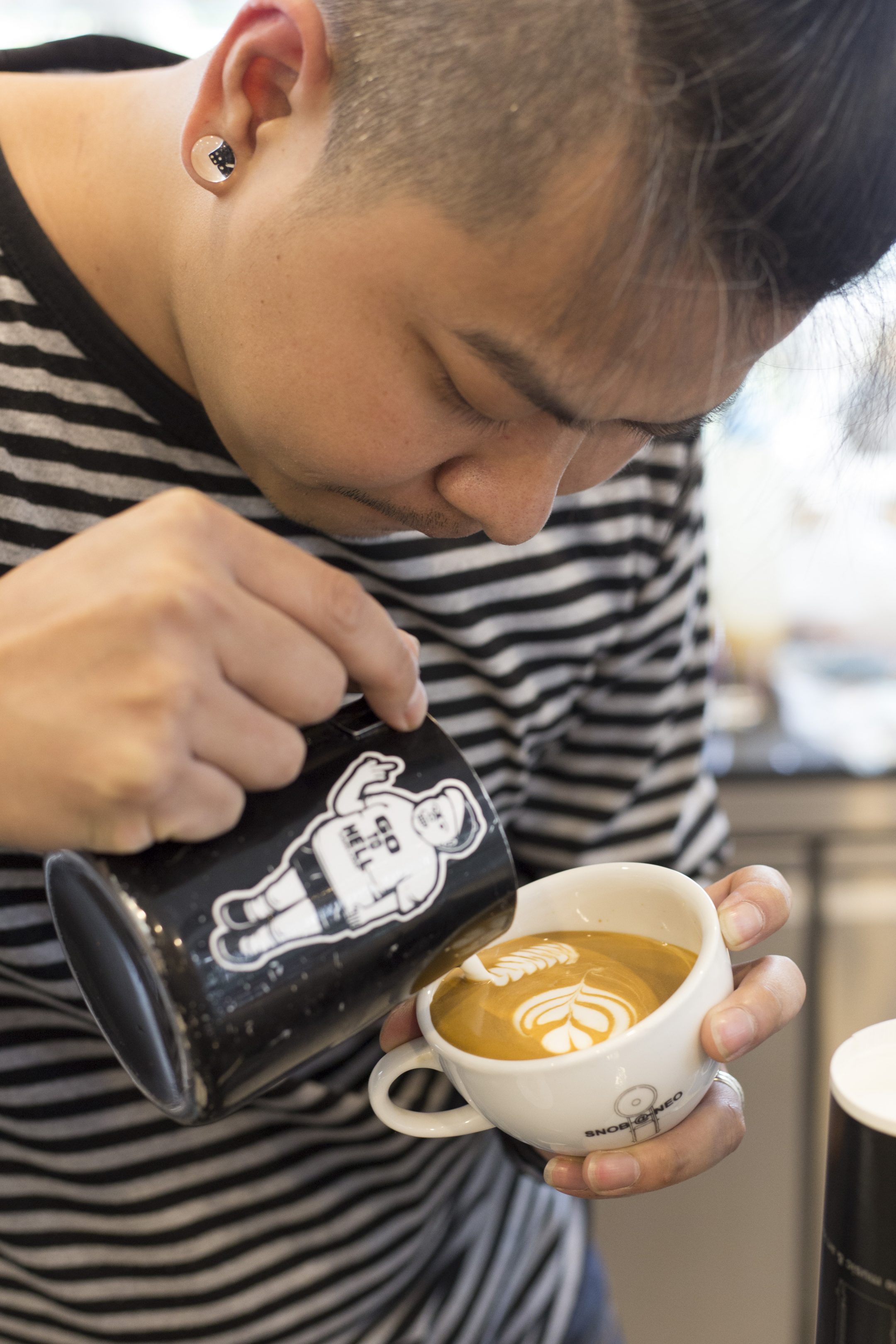 SNOB@NEO เป็นร้านกาแฟของเครือบริษัท NEO Entertainment Gallery ที่ผู้บริหาร คุณวโรภาส ปิฏกานนท์ ตั้งใจสร้างมุมกาแฟออกมาให้ตรงตามไลฟ์สไตล์ของคนรักเพลงดนตรีและหนัง ฉะนั้นภายในร้านจึงรายล้อมไปด้วยเครื่องเสียงชั้นนำ แผ่นซีดีเพลงกับหนังจากโลกยุคเก่าและโลกยุคใหม่ โดยเฉพาะแผ่นซีดีเพลงที่ลูกค้าสามารถขอทดลองเปิดรับชมก่อนซื้อติดไม้ติดมือกลับบ้านได้ และยังมีมุมโต๊ะเก้าอี้นั่งสำหรับจิบกาแฟ ฟังเพลง พร้อมนิตยสารและหนังสือไว้สำหรับอ่านฟรี