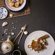 Chayanee ‘Nes’ Mankasetkit of Fukuro Japanese Restaurant in Mae Rim Plaza serves intriguing fusion Japanese cuisine. The Vietnam roll starter is classic Vietnamese with a Japanese twist in that it uses salmon sashimi in its filling. Served with sesame sauce with a gentle ginger aroma, it is a healthy and refreshing bite. Also try the teriyaki pork chop which is cooked to tender perfection and served with potato salad with wasabi mayonnaise.