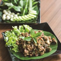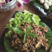 เมนูแนะนำ เริ่มต้นกับเมนูลาบรสจัดจ้านตามสูตรของชาวอีสานเป็น ลาบเป็ด ลาบหมูน้ำตก และลาบไก่ รับประทานพร้อมกับส้มตำปูปลาร้า ส้มตำลาว หรือส้มตำไทย ตามด้วยแกงอ่อมไก่ในน้ำซุปกลิ่นหอม ไส้กรอกอีสานชิ้นขนาดพอดีคำ เนื้อหมูแดดเดียวรสชาติกลมกล่อม หากยังไม่อิ่มท้อง โปรดอย่าลืมสั่งซุปมะเขือและซุปหน่อไม้สไตล์อีสาน รับประทานคู่กับข้าวเหนียวร้อนๆ ตบท้ายมื้อเป็นของหวานด้วยข้าวเหนียวมะม่วง กล้วยบวชชี และสละลอยแก้ว