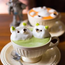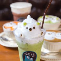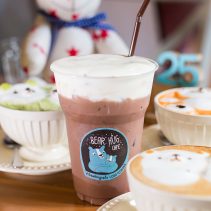 Bear Hug Café invites you to sample a range of aromatic drinks served with their distinctive decoration called 3D Latte Art. This type of decoration is created from whipping milk foam to create shapes on top of your desired drink. Bear Hug Café uses this method to create bear shaped 3D latte art before decorating it with melted chocolate or food colouring. You can choose this cute bear latte art to top either a hot or cold drink. Whether you would like this little bear shaped latte art on your coffee, green tea, Thai tea, or cocoa, you
