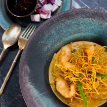 ส่วนเมนูอาหารของร้าน โปรดอย่าพลาดกับ ข้าวซอยเส้นสปาเก็ตตี้เนื้อแซลมอนกับกุ้งทอด ถัดมาเป็น ข้าวน้ำพริกลงเรือ และ พะแนงไก่ไข่กรอบ หากใครอยากหาเมนูรับประทานแบบเบาสบายท้อง โปรดเลือกสั่งเป็น สลัดปูอะโวคาโด หรือ เบอร์เกอร์ไก่ที่เหมาะสำหรับผู้ที่อยากหลีกเลี่ยงการรับประทานสัตว์ใหญ่