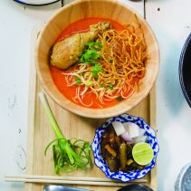 KhuaKai Nimman opened its doors to instant success with its famous sizzling noodles with chunks of tender chicken, crisp-fried calamari, crispy chicken, spicy sausages and soft boiled eggs, cooked to perfection – and flair – on arrival at the table. This restaurant is packed to the rafters on any given day with people streaming in to try not just their signature dish, but others such as the bite-size pieces ofminced pork toast, or their famous chicken khao soy. End the meal with an iced lemon tea, flower tea or a freshly squeezed orange juice.