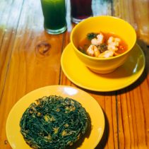 ปุ๊ย บ้านสวนสลัดแม่โจ้ ร้านอาหารสายสุขภาพที่มีเรื่องราวความอร่อยมานานนับ 20 ปี เริ่มต้นทำสลัดแพ็คถึงส่งขายในซุปเปอร์มาเก็ตเกษมสโตร์ ซึ่งเป็นแหล่ร้านโกรเซอรี่ชื่อดังของชาวเชียงใหม่ในอดีต เม่ือรุ่นลูกหลานขึ้นมาสานกิจการต่อ จึงได้เปิดตัวเป็นร้านอาหารขนาดกระทัดรัด ตั้งอยู่ท่ามกลางความร่มรื่นของแมกไม้นานาพันธุ์ สำหรับห้องอาหารมีทั้งห้องปรับอากาศและโต๊ะริมระเบียงไม้ติดกับบ่อปลา