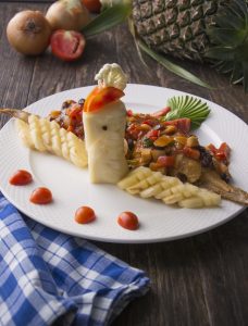 อาหารจานหลักซึ่งเป็นเมนูใหม่ของร้าน ได้แก่ ปลาสองใจ เป็นเมนูเนื้อปลาทับทิมทอดกรอบผัดพริกไทยดำ และปลาทับทิมกรอบผัดเปรี้ยวหวาน วางจัดเสิร์ฟบนจานเดียวกัน ต่อด้วย หงส์ปีกหัก เมนูอาหารปีกไก่ทอดสับครึ่ง ราดทับด้วยซอสกลมกล่อมสไตล์จีน พร้อมตกแต่งจานด้วยสับปะรดที่แกะสลักออกมาเป็นรูปทรงหงส์ ตบท้ายด้วยเบเกอรี่และเครื่องดื่มผลไม้หลากรสชาติ