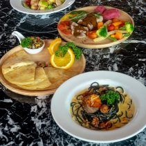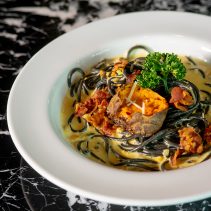 เมนูแนะนำ ได้แก่ สเต็กหมูเอสเปรสโซ่ เมนูสเต็กเนื้อหมูราดซอสสูตรพิเศษที่มีส่วนผสมของกาแฟกลิ่นหอม เสิร์ฟพร้อมกับผักสดและมันบดสีม่วงที่มีส่วนผสมของบีทรูท ถัดมาคือ สปาเก็ตตี้ซอสอ่องปู๋ สปาเก็ตตี้เส้นสีดำในซอสอ่องปูกลมกล่อม โรยตกแต่งด้วยเบค่อนทอดกรอบ