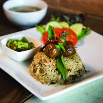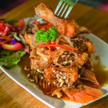 The sai-ua spicy northern sausage fried rice with green chili dip goes superbly with a chilled glass of beer and for those who can’t quite handle the spice, try their 250 gram salmon steak with accoutrements. A great place to take the family or a group of mates.