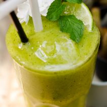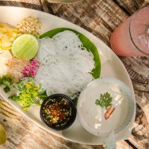 ถัดมาเป็น แตงโมปลาแห้ง อาหารจานคลาสสิคสมัยรัชกาลที่ 5 ที่เต็มไปด้วยกรรมวิธีซับซ้อน แต่บ่งบอกถึงความประณีตของบรรพบุรุษไทยแต่ดั้งเดิมได้อย่างถ่องแท้ ตามด้วยเมนูโบราณ ขนมจีนซาวน้ำ เสิร์ฟพร้อมกับเครื่องเคียงเป็น กุ้งแห้งป่น กระเทียม สับปะรด ขิง มะนาว พริกน้ำปลา ดอกไม้สีสันสวยงาม และ น้ำกะทิใส่แจงลอนสีชมพู ปิดท้ายด้วยเครื่องดื่มชื่นใจเป็น summer mojito ที่มีส่วนผสมระหว่าง มะม่วง มินต์ กับ พริกไทยดำ ถัดมาเป็น pina colada เครื่องที่หอมกลิ่นหวานของสับปะรดผสมกับน้ำมะพร้าว และ น้ำผลไม้ปั่นต่างๆ