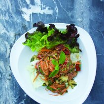 Chef Tutu invites you to taste his stir fried fish-maw with crab meat, a delicate balance of flavours and textures. He also recommends his refreshing salmon salad of seasonal fresh vegetables, wonderfully refreshing during the hot months. We at Spoon&Fork love his crab cakes, packed with meaty chunks of crab and cooked to perfection and there is now a new Southern Thai receipt on the menu of Southern fried rice topped with seafood and basil. If you haven’t made it to Maiiam and Kampaengkaew then you are in for a treat.